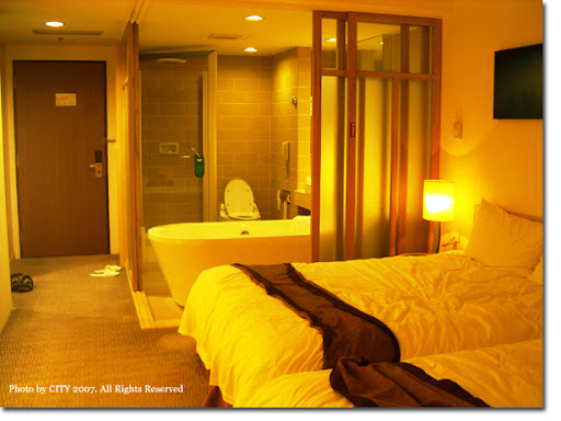 這次旅遊入住的是凱撒飯店,浴室採全拉門設計,感覺是專為情侶設計。