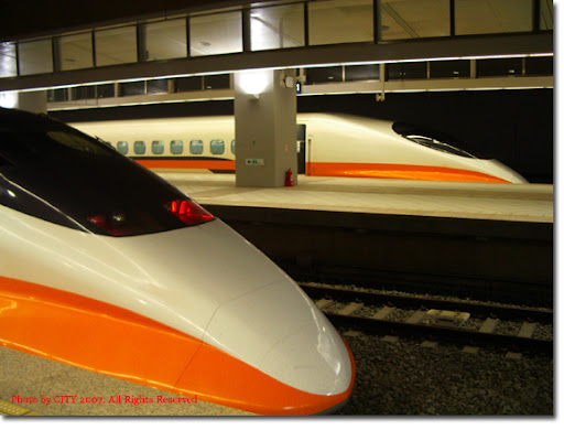我們搭乘的是由歐日混血的台灣高鐵。還沒全力衝刺時,列車就輕鬆領先了台鐵。