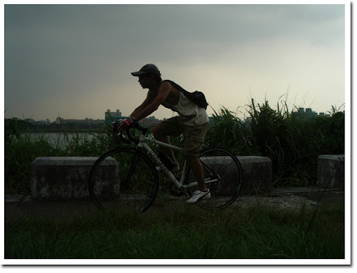 先慢慢騎了一段,適應一下詭異的平衡感,接著來到了洲美僑下的車道。我把變速器調到最高、身體壓低,開始猛踩踏板。接下來一切就開始不同了,這台車竟然比我平常騎的最高速還要快個2-3倍,四周景色快的不像話,我像是開著裕隆計程車的阿北突然跑去開飛碟一樣,咻咻咻,一下子超越好多慢吞吞的騎士,心跳快得要命,太刺激啦,平常要騎個8-9分鐘的路段,2分鐘就飛完啦。